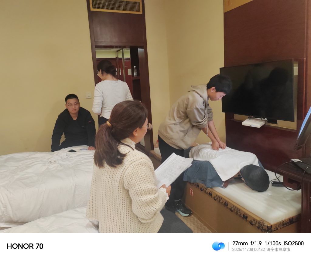 备赛过程中,最令人动容的是师生同心、无私奉献的感人画面。张灵敏老师在接到学校参赛消息后,为参赛学子倾囊相授。从晨光熹微到夜深人静,张老师的日程表里只有学生——他常常是早上在校完成教学工作,中午一盒泡面简单果腹后,便匆匆赶到实训室指导学生手法,晚上十一点多,他的微信群依然活跃,耐心地为学生们答疑解惑,提供理论指导。他的敬业精神与深切关怀,深深感染着每一位参赛选手。
