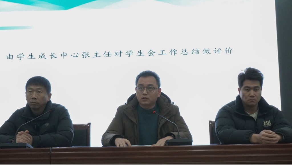 最后,副校长杨新杰为大会作总结讲话。他高度评价了本次述职大会的组织工作和学生会一年来的辛勤付出与取得的成绩。他强调,学生会是学校联系广大同学的桥梁和纽带,希望全体学生会成员以此次大会为新的起点,始终牢记服务同学的初心,恪守学生本分,永葆理想情怀,勤勉务实做事。要不断提升自身综合素质,强化团队协作,围绕同学所思所想所盼精准发力,团结带领广大同学共同营造文明、和谐、积极向上的校园氛围,在学校高质量发展的新征程中贡献青春智慧与力量。
